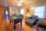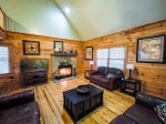 Three Bedroom, two bath that sleeps up to six with king, queen, and two twins. Property has beautiful views, foosball table, covered porches, outdoor dining, grill, and porch swings. Indoors there is full kitchen, ample dining space, wood burning fireplace, flat screen smart tv with streaming. Master bath with garden tub. Washer/Dryer. Internet is also available to guests.