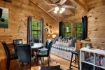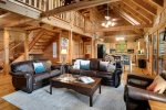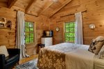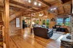 Once inside of Cherokee Lookout Point, you'll immediately notice that this home was put together with ample amounts of love and attention. Pair the comfortable furnishings and beautiful decor with the tongue and groove, high ceilings, beams, and open floor plan, it's beautiful from start to finish. The excellent floor plan on the main floor offers an abundance of space for you and your guests. The large open kitchen is fully stocked, has amble cabinetry and counter space, and is open to the dining and living room areas. The living room area boasts a gorgeous rocked gas log fireplace, new leather furniture, flat screen television with satellite service, and plenty of windows to enjoy the beautiful views. It's the ideal space to unwind after a long day of exploring the Smokies. There is also a bedroom on the main floor, which features a queen sized bed, and flat screen television with satellite service. For guest's convenience, the bath is located for all guest use and features a tub/shower combo. Upstairs you will find a lovely open loft which features additional gathering space with nice table and view of living room below. There is also a daybed, which can convert to a full sized bed for additional sleeping if needed. The upstairs bedroom features a queen sized bed and flat screen television with satellite service. There is an additional bath, which also features a tub/shower combo.