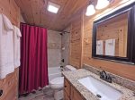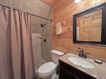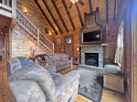 Once you arrive at High Mountain Cabin, you'll immediately notice how the cabin earned it's name, as it sits on a ridge top overlooking the beautiful mountains. With it's large porches, impeccable rock work and landscaping, and breathtaking views - you'll know you've found the mountain retreat you've been searching for. As you step inside, you'll realize it's just as lovely. The massive wall of windows that frame the front of the cabin make it so you can enjoy the mountains just as much inside as you can outdoors. The large open concept living spaces are perfect for you and your guests to gather and enjoy each other's company. The living room boasts a beautiful custom gas log fireplace, handcrafted luxury furniture, and flat screen television with satellite service. The kitchen features granite countertops, stainless appliances, and is fully stocked with your every need in mind. The dining area features beautiful custom table, wood finishing, and ample space for you and your guests to enjoy a nice meal right at the cabin. Two of the three bedrooms are located on the main floor, down the hall from the living areas. The first bedroom features a King bed and nice closet space. The second bedroom features a bunk bed set with two twins. The bath is convenient for all guest's use and features a tiled tub/shower combo. The laundry is also located on this floor. Upstairs you will find the private master suite with king sized bed and flat screen television with satellite service, a small sitting area in the open loft, and private bath with a tiled shower. Downstairs consists of a game room with a pool table, video arcade machine with 60 classic games, skee ballgame, At Games Legends pinball machine, and a dart board. There is also a TV room with a queen sleeper sofa, two rocking chairs, and a new 70" LG ultra high def smart TV with satellite and unlimited internet service and Wii Games. The outdoor areas to this property are simply gorgeous. On the main level you will find a large porch which overlooks the beautiful Smoky Mountains which you can enjoy from the rocking chairs or while using the gas grill. On the lower level there is a rocked fire pit, hot tub, and a wooden porch swing perfect for enjoying a little bit of privacy after a long day exploring.
