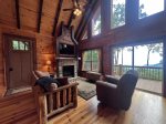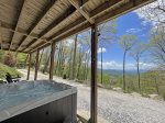 Outdoors: Breathtaking long range layered mountain views, large porch, rocking chairs, gas grill, fire pit, hot tub, cornhole boards and porch swing.