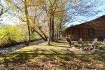 Bear Creek is a two bedroom, one bath log cabin that was hand-crafted by local builder and stone mason Howie Suttles. This gorgeous cabin has custom slate floors, stacked stone wood burning fireplace, open floor plan, and sits right on a stocked trout creek. The fully equipped kitchen, charcoal grill, and ample dining space allows for plenty of dining options right at the comfort of your cabin. Stay inside and unwind by the fireplace while watching television with streaming services, roast marshmallows by the fire pit, take a dip in the hot tub, or fish right in your own back yard. This cabin truly is the ideal mountain getaway! Now offering Starlink WIFI.