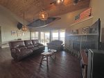 Inside, you will find a large, fully stocked kitchen open to the spacious living area with comfortable seating, flat screen tv, and an abundance of windows. There are four bedrooms, three feature queen sized beds, and one with twin over full bunks. There are three baths, two have tub/shower combos, one with walk-in shower. For guest convenience, there is wireless interenet, dish satellite service, washer/dryer, and home is pet friendly.
