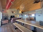 But if you're looking to get away from it all, the cabin has glorious views! With the large covered back porch, you can enjoy a nice morning coffee, or cooking a delicious meal on the Big Green Egg where you can enjoy a dinner with a view. If you need relaxation after a long day, make sure to take a long, soothing dip in the hot tub.