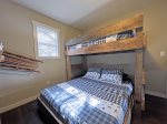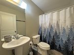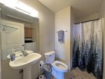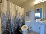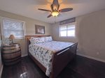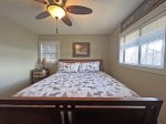 Primary bedroom with queen sized bed, private bath with tub/shower combo