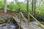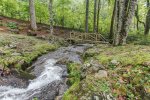 Haven on the Creek is a cute, impeccably decorated little Bungalow that is full of character and charm. The kitchen is beautiful and fully stocked with whatever you need to cook a meal, right in the comfort of your getaway home. The quaint living space features comfy seating options with a flat screen tv. The bath with a walk-in shower & stacked washer/dryer. The bedroom suit is huge and boasts a king sized bed, rocking chair, and ample storage space for all your personal items. The outdoor space is truly the drawing feature of this home. Everywhere you are outdoors, you can enjoy the soothing sounds of Fisher Creek, which rolls along the backside of the property. Whether you want to relax on the porch loungers, sit on the front porch with the large overhead shade, grill on the gas grill, or enjoy a meal at the bistro table - you're sure to hear the bubbling creek, washing your worries away. In the backyard, there is a shared bridge, where you can enjoy walking by the creek and enjoy a closer glimpse.