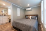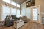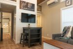 Indoors you will find a tiny space that embraces modern luxury. Owl's Nest River has an open living space with comfortable seating, large flat screen tv with streaming services, highspeed internet, a fully stocked kitchen with stainless steel appliances, a small dining space, private bedroom with queen bed and flat screen tv, and a private bath with stand up shower. Owl's Nest River features an additional loft sleeping space with King Size bed. This unit offers a stackable washer and dryer for guest usage.