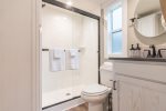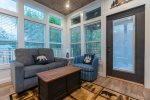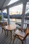 Indoors you will find a tiny space that embraces modern luxury. Bear River has an open living space with comfortable seating, large flat screen tv with streaming services, electric fireplace, highspeed internet, a fully stocked kitchen with stainless steel appliances, a small dining space, private bedroom with queen bed and flat screen tv, and a private bath with stand up shower. Bear River features an additional loft sleeping space with King Size bed. This unit offers a stackable washer and dryer for guest usage.