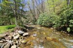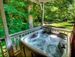 Privacy plus comfort! This cottage is so cozy, most people call it the "Honeymoon Kottage." Bear Kottage sits right on beautiful Alarka Creek, you can walk out your door and fish right in your back yard. This is a great little cottage for those wishing to do a little fishing, wade in the creek, or simply relax beside the beauty of the water from the comfort of their porch rockers or hot tub.