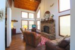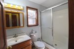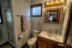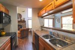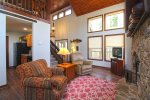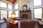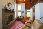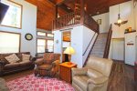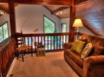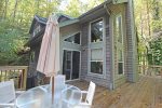 At Whisper Creek, you can sit an enjoy the sounds of the nearby creek on the large decks. By the front door, there is a nice covered area to relax in the porch rockers or porch swing and enjoy your morning coffee. Or you can sit back and relax by the fire pit and enjoy the crisp mountain air by the fire. Whip up a quick dinner and enjoy outside on the charcoal grill and patio set on the porch. Inside has a lovely rocked, gas log fireplace. This is a great place to unwind after a day of adventure. With wireless internet, the smart tv has streaming capabilities for online streaming sites, or the ability to work remotely from the comfort of the living room. For guest convenience, there is also a fully stocked kitchen and dining area. The master bedroom is located on the main level with king sized bed and bath that is convenient for all guests. Upstairs, there is an additional bedroom with two twins, reading loft with single chair sleeper, and bath with full laundry service.