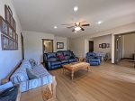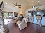 Just outside the small mountain town of Bryson City, NC, Firefly Hill is a spacious four-bedroom home with two living areas, each with a TV and comfortable seating – plenty of room for your group of up to eight friends and family to spread out. Take your pick from two covered decks overlooking the sloping front lawn with a pretty view of Deep Creek Valley. Soak in the hot tub, roast marshmallows and tell ghost stories at the fire pit. Wander just down the road to the Deep Creek entrance of the Great Smoky Mountains National Park, where you can hike to three sparkling waterfalls, fish for trout or take a splashy inner tube ride down the creek.